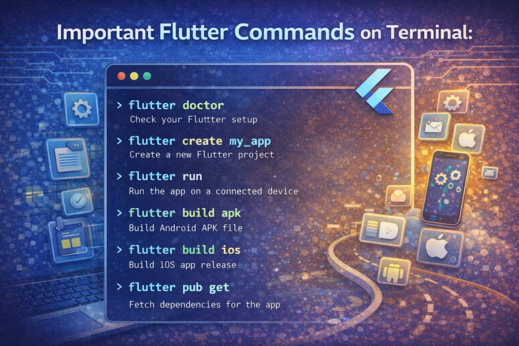 By mastering these 20 Flutter commands, you’ll streamline your workflow and avoid common errors. Keep this list as a handy reference whenever you work on Flutter projects.